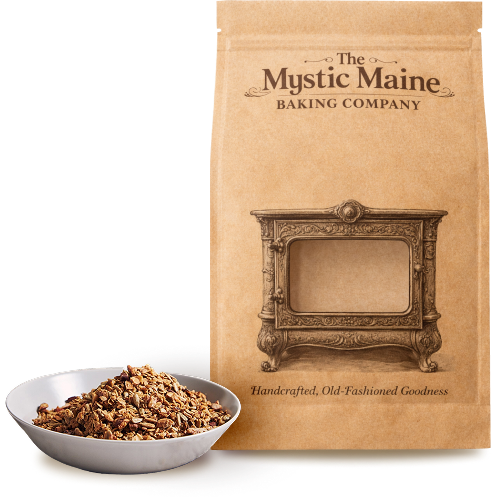 The Mystic Maine Baking Company begins with a wood cookstove called The Mystic Maine — the steady, glowing heart of my childhood home in rural Maine. My earliest food memories are of my mom pulling her granola from the oven, the kitchen warm with cinnamon and the steady heat of the stove. That stove was never just about food — it was about being cared for in the most ordinary, powerful way.